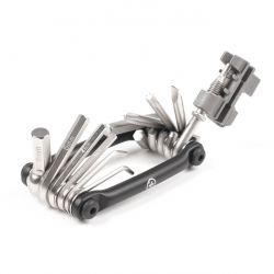 Outillage : Prévoir un bloc multifonctions qui permet d'avoir les clés allen, tournevis et dérive-chaine sous la main. Une pince multifonctions ainsi que des clés plates de 10 et 15 (en général) seront un plus.